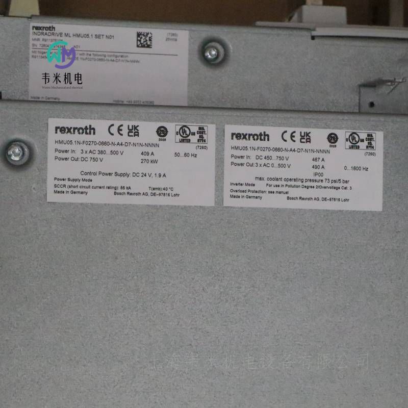 力士乐通用伺服驱动器HMU05.1N-F0270-0660-N-A4-D7-N1N-NNNN R911345466,购买进口液压、气动、自动化控制工业配件,认准“上海韦米机电设备有限公司”,公司经营进口品牌产品十多年,保证原装产品,品质保障,售后无忧,批量零售,价格优惠,产品图片实物拍摄。欢迎新老客户咨询采购!